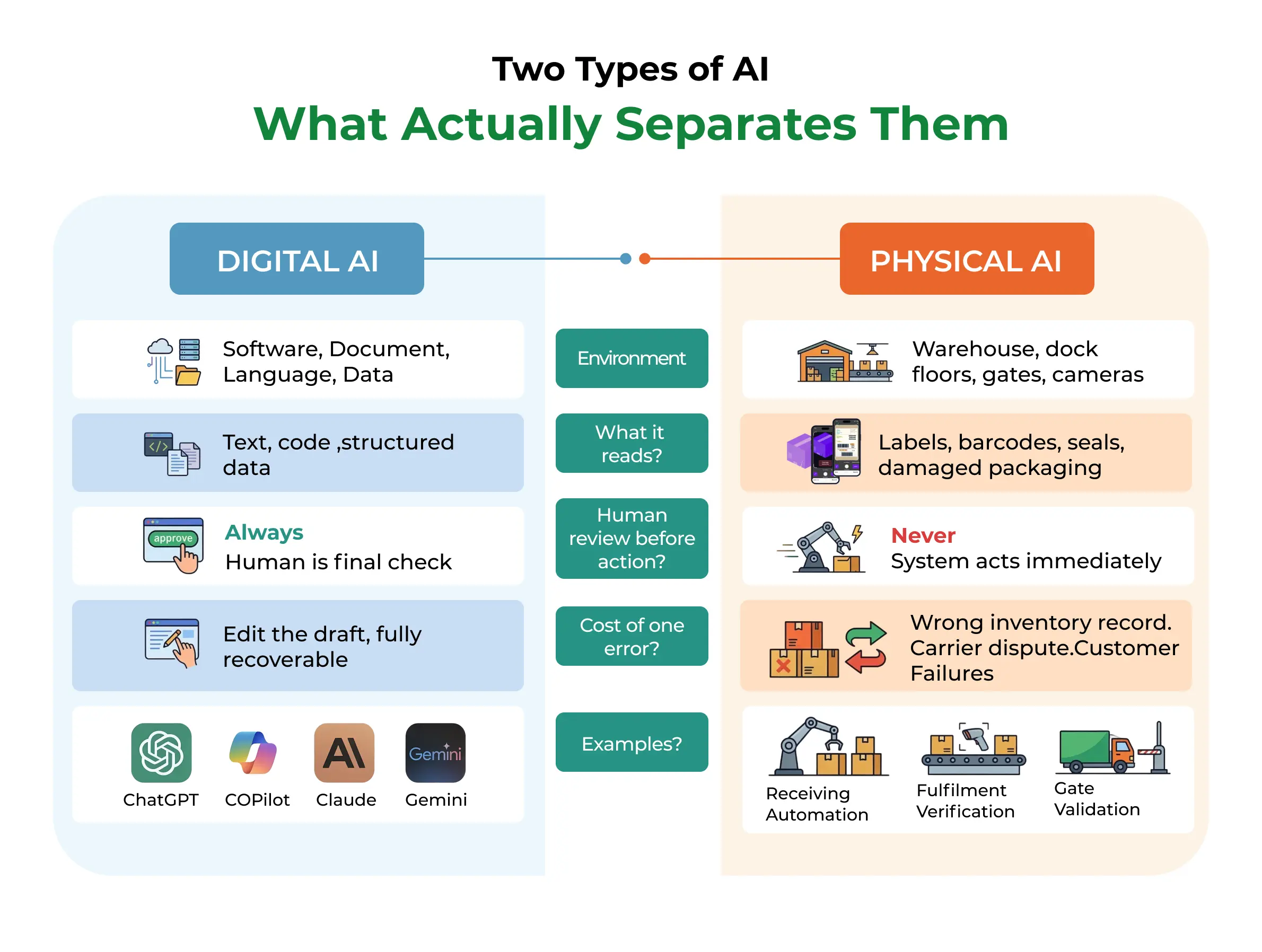 This is tolerable in a chatbot. You fact-check. You reread. You push back. Now place that same tendency inside a Physical AI system, reading a partially torn barcode at three in the morning in a distribution center.