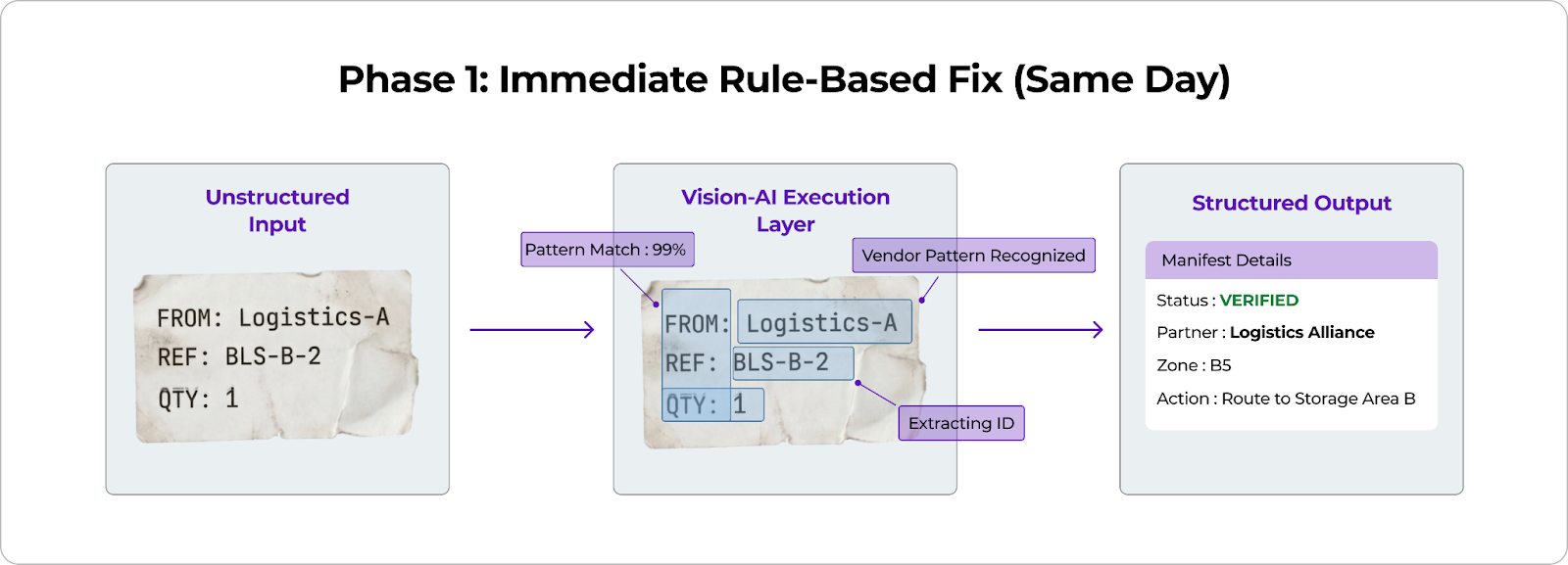 Instead of relying on static parsed fields, the system applied contextual logic to determine the correct partner and routing decision before the item moved forward.