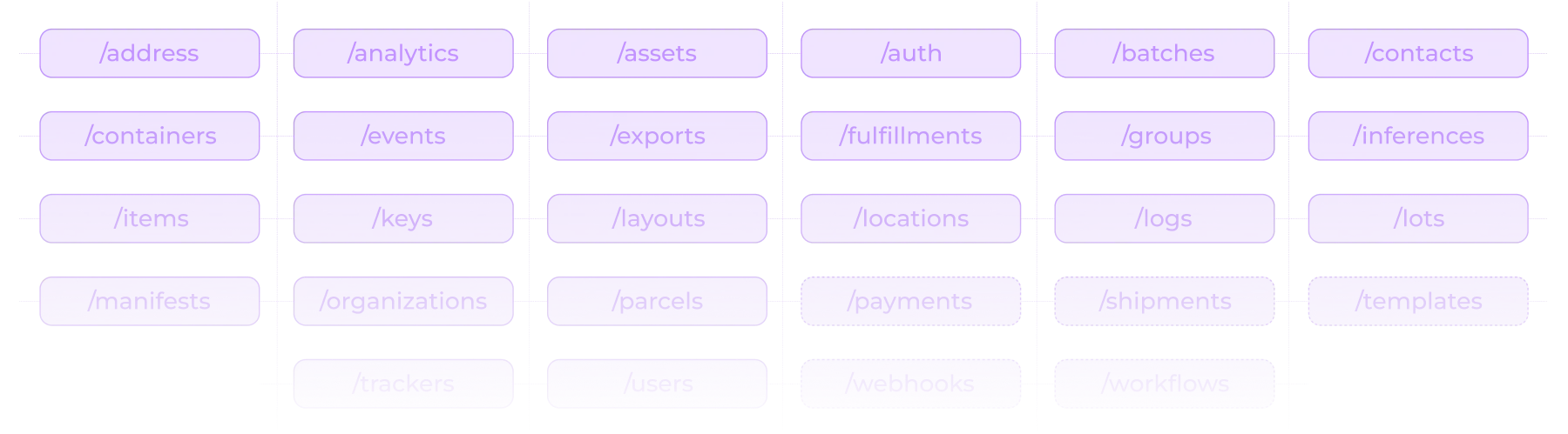 Our logistics API suite is designed with speed and flexibility in mind, allowing you to start building your workflows for receiving, returns, inventory, and fulfillment instantly.