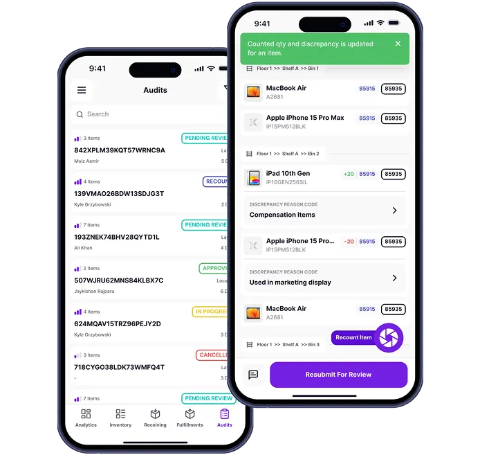 Streamline cycle counts with automated audit tasking and audit trails and across warehouses, ensuring 3PLs have continuous, client-level visibility without labor drain or latency gaps.