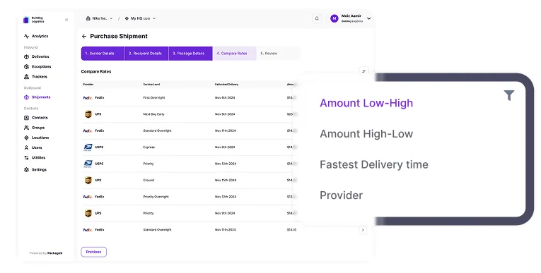 Let staff or tenants purchase outbound shipping labels directly in PackageX.